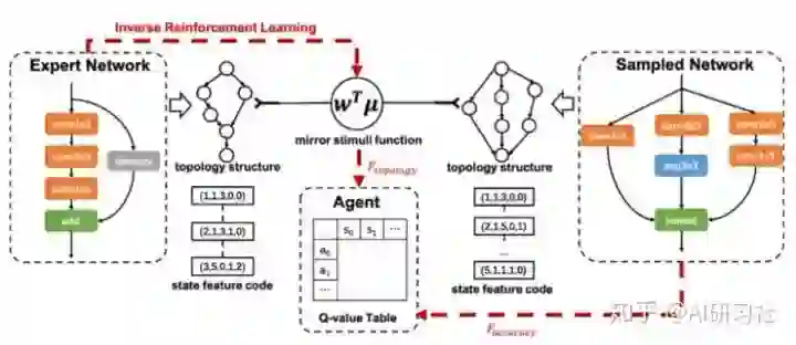 IRLAS的作者观察发现:人们自行设计的网络拓扑结构往往比自动化生成的那些结构更优雅,而这些结构同时定义着网络的响应时间和内存消耗。因此,作者没有显式地设定资源消耗的约束,而是试图促使生成的网络拓扑尽可能地模仿某种经典网络模型(如ResNet)。“模仿”这一部分是通过一个奖励函数中的一个附加项来实现的。