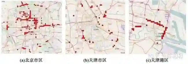 这种差异反映出两座城市具有不同的危险品运输需求:北京的危险品需求多为加油站、餐饮燃气等民用燃料为主,运输车辆需要穿行市区,因此在市中心造成连片的危险模式;而天津的危险品需求主要是天津港的危化品进出口,因此危险模式集中在天津港区。