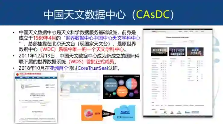 了给天文学家提供良好的基础设施,中国正在打造「中国天文数据中心」,除了把国内数据收集在一起,还把国外的数据汇总起来,共同为天文学研究提供服务。「中国天文数据中心」通过了世界数据系统的权威认证,这在亚洲是第一个。