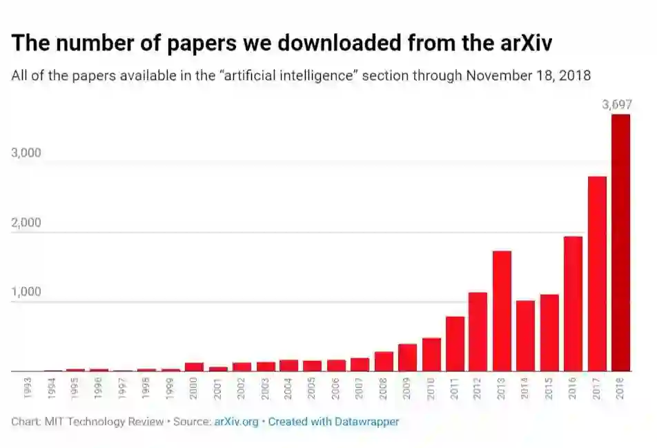 《麻省理工科技评论》最近在全球最大的科学论文开源数据库之一arXiv上收集了16625篇人工智能领域的论文。这些论文的发表时间跨度为25年,最早可追溯到1993年,最晚截止至2018年11月18日。根据论文的摘要和关键词,《麻省理工科技评论》分析了不同人工智能方法的发展趋势并指出:“深度学习的时代即将结束”。