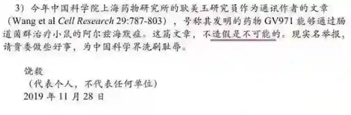 2019年11月28日,饶毅在写给国自然基金委的一封举报信中,曾实名举报耿美玉造假,称该研究