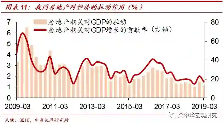 根据我们的测算,每1单位的房地产行业的GDP增长,能够合计拉动1.6单位的其他行业的GDP增长,房地产对采掘、金融、金属冶炼、非金属制品、批零等行业的拉动作用尤其大。过去十年里,我国1/3左右的经济增长,是由房地产直接或者间接拉动起来的。