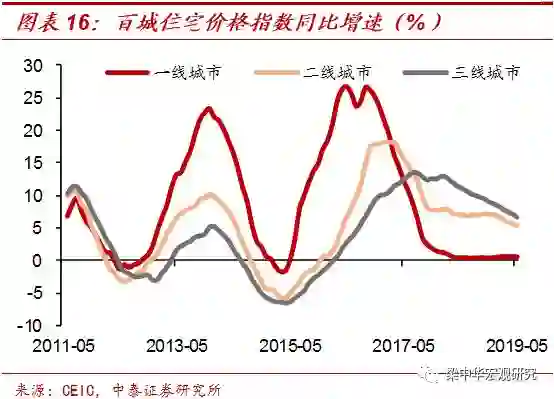 所以我们发现房价涨得多的城市,消费的相对表现也会更好一些。例如在2015-2016年小城市房价大幅回落时,小城市的消费走势也明显落后于大城市。