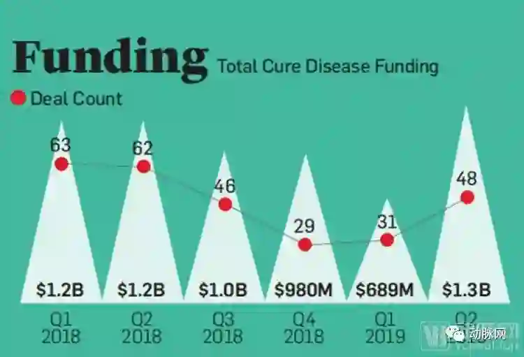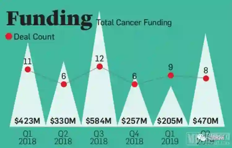 在“癌症”领域,资金在2018年年底持续下滑之后,在今年第二季度迎来了反弹,相比同年第一季度增长了120%以上,中位数交易额达到了1400万美元。