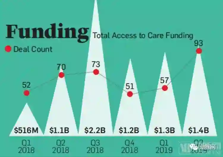 在“医疗服务可及性”这个领域,从2018年上半年(2018Q1、2018Q2)到2019年上半年(2019Q1、2019Q2)的融资增长了67%,交易数量增长了23%。