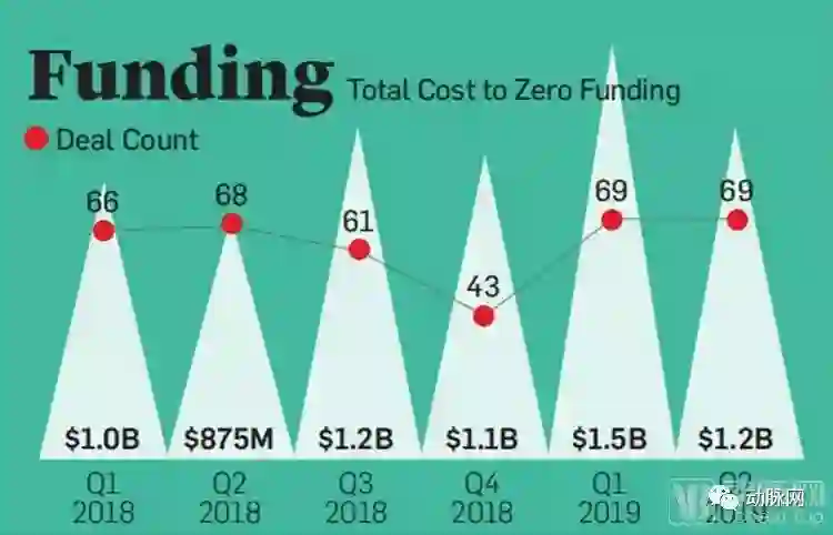 在“治疗疾病”领域,资金和交易数量已经在多个季度下降,到2019年6月有所增加,季度资金增加了90%,交易数量上涨了55%。