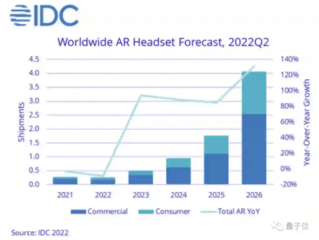预计到2026年底,AR头显市场的五年复合年增长率(CAGR)将达到70.3%,达到410万台。
