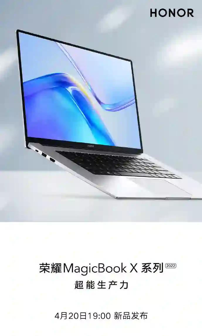 荣耀智慧生活官方发文,官宣荣耀 MagicBook X 系列 2022 版将于 4 月 20 日 19:00 正式发布。根据荣耀智慧生活官方公布的宣传图显示,荣耀 MagicBook X 系列 2022 版机身轻薄,仍旧采用超窄边框设计,左侧拥有一个 Type-C 接口、一个 USB 接口以及一个 HDMI 接口。目前,荣耀并未公布荣耀 MagicBook X 系列 2022 版详细配置信息,也不清楚是否还将会有两个不同的尺寸版本。