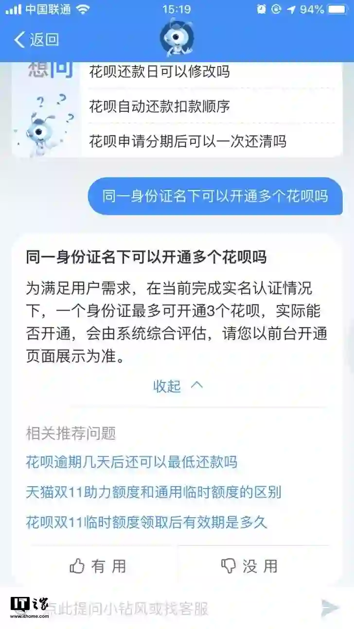9.支付宝花呗取消账号限制,一个用户最多可开3个花呗