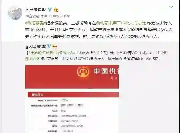 王思聪欠款约1.5亿元成为被执行人的消息引发广泛关注,昨日,人民法院报微博辟谣称,王思聪未被法院采取限制高消费,也未被纳入失信执行人名单。律师表示,目前应是执行程序刚刚启动,处于刚刚立案阶段。但是,如果“被执行人”的财产不够执行的话,而且有财产不用于执行,才可能被列为失信名单。