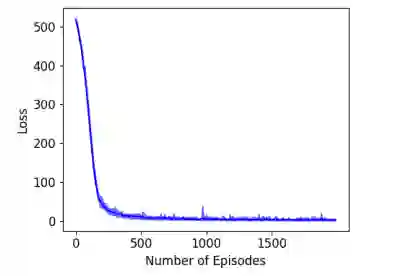 图 2:1000 位模式记忆的学习曲线(显示了十次结果:阴影区域表示了最小损失和最大损失,粗曲线表示平均损失)。
