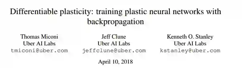 怎样才能得到经过初始训练后就可以利用经验持续快速高效学习的智能体呢?Uber AI 近日研究表明,如同深度神经网络的连接权重,神经可塑性也可以通过梯度下降来优化。在模式记忆、图像重建和强化学习任务上,该方法得到了超越传统非可塑网络的表现,表明可微可塑性有望为元学习问题提供新的高效方法。