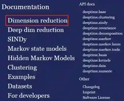 Deeptime 库支持的算法包括动态数据降维、使用神经网络进行深度降维、SINDy、马尔可夫状态模型、隐马尔可夫模型等。此外该库还提供有使用的 API 文档、日志更新等其他内容。