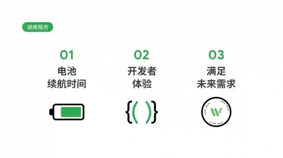 Health Services 健康服务(在智能手表上收集实时传感器数据的高能效易使用的开发库)现已上线。健康服务为穿戴应用提供高质量的实时传感器数据,帮助改善电池续航能力、优化开发者体验,拓展更多面向未来的可穿戴设备使用场景。