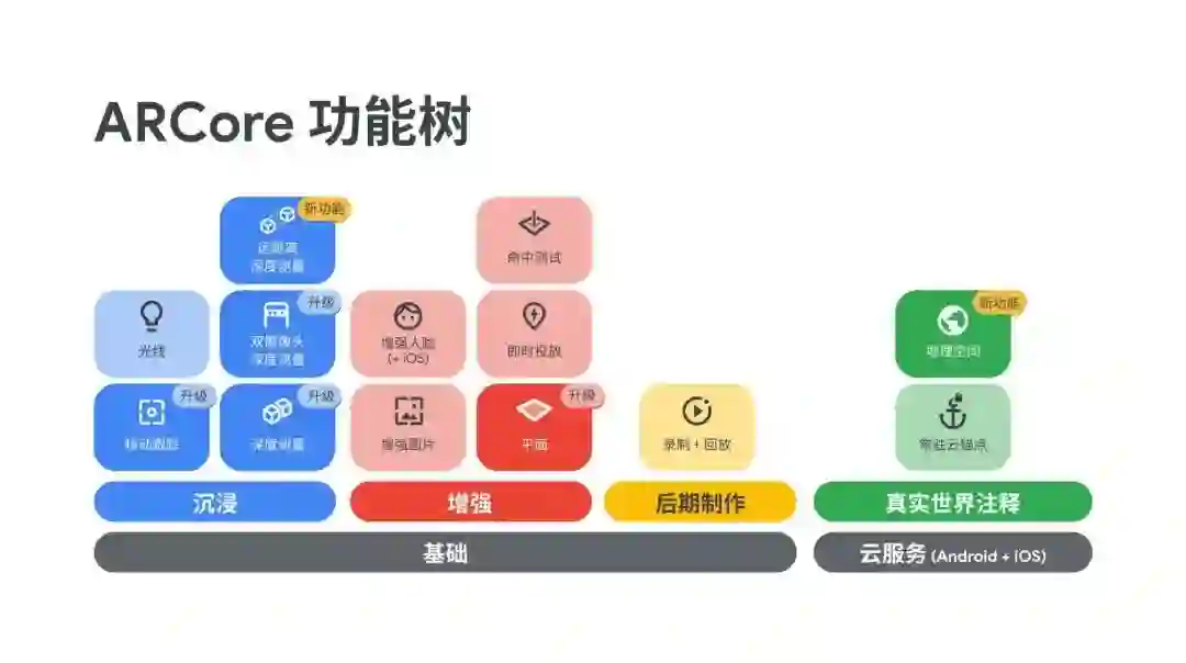 ARCore 是谷歌的增强现实体验构建平台,利用不同的 API 让手机能够感知其环境、理解现实世界并与信息互动。ARCore 自 2017 年推出,目前有超过 12 亿台 Android 设备支持。