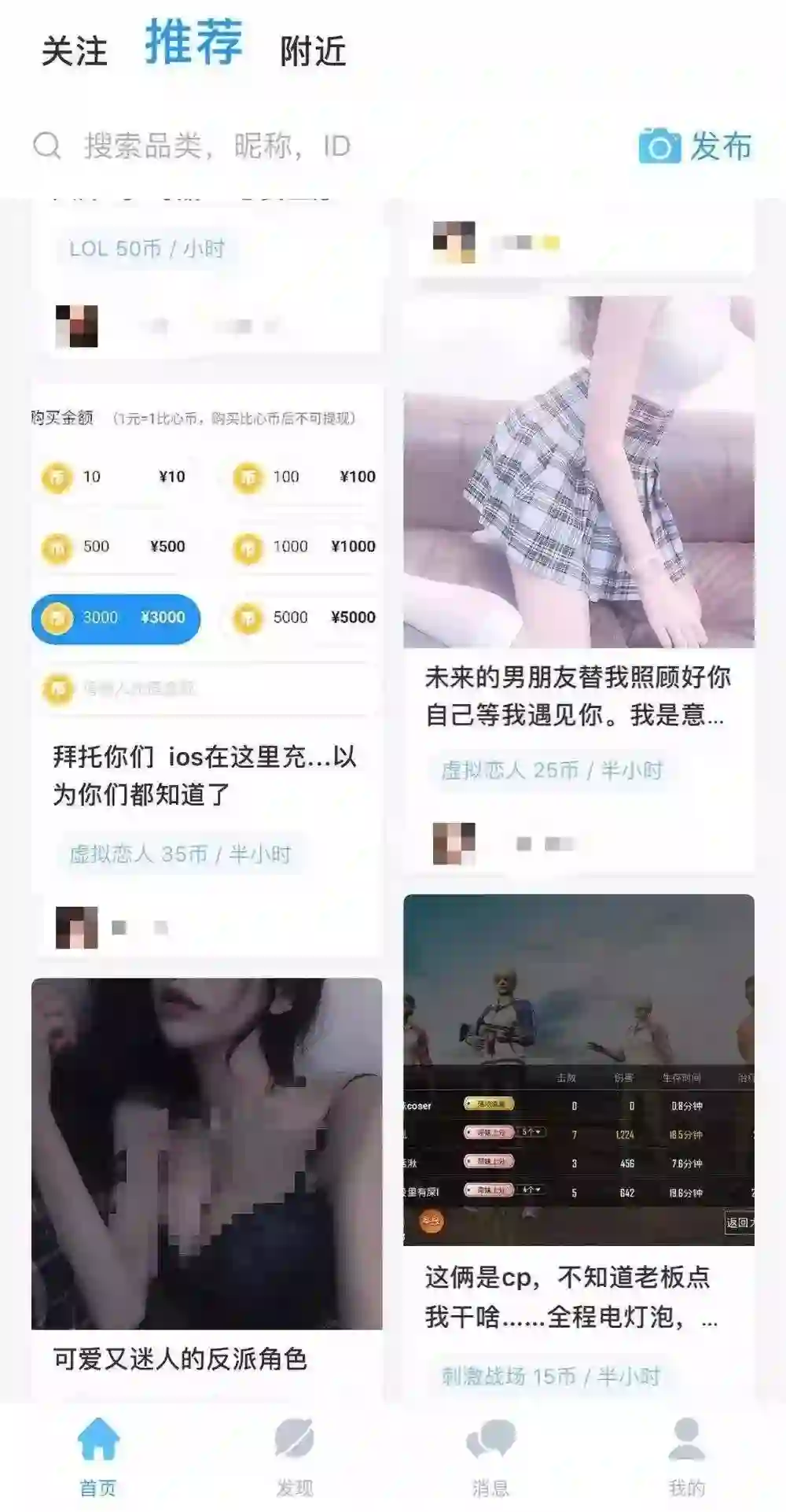 在主打大神上分的陪玩平台,用户的社交需求较为薄弱,其核心诉求只有一个:上分。因此,游戏品类上可供选择的便只有强竞技属性的多人游戏。这类平台招募的“大神”多为男性,毕竟游戏技术好的女性陪玩占比远不如男性基数大。某头部陪玩平台员工R表示,这类用户在自家平台的占比不到30%。