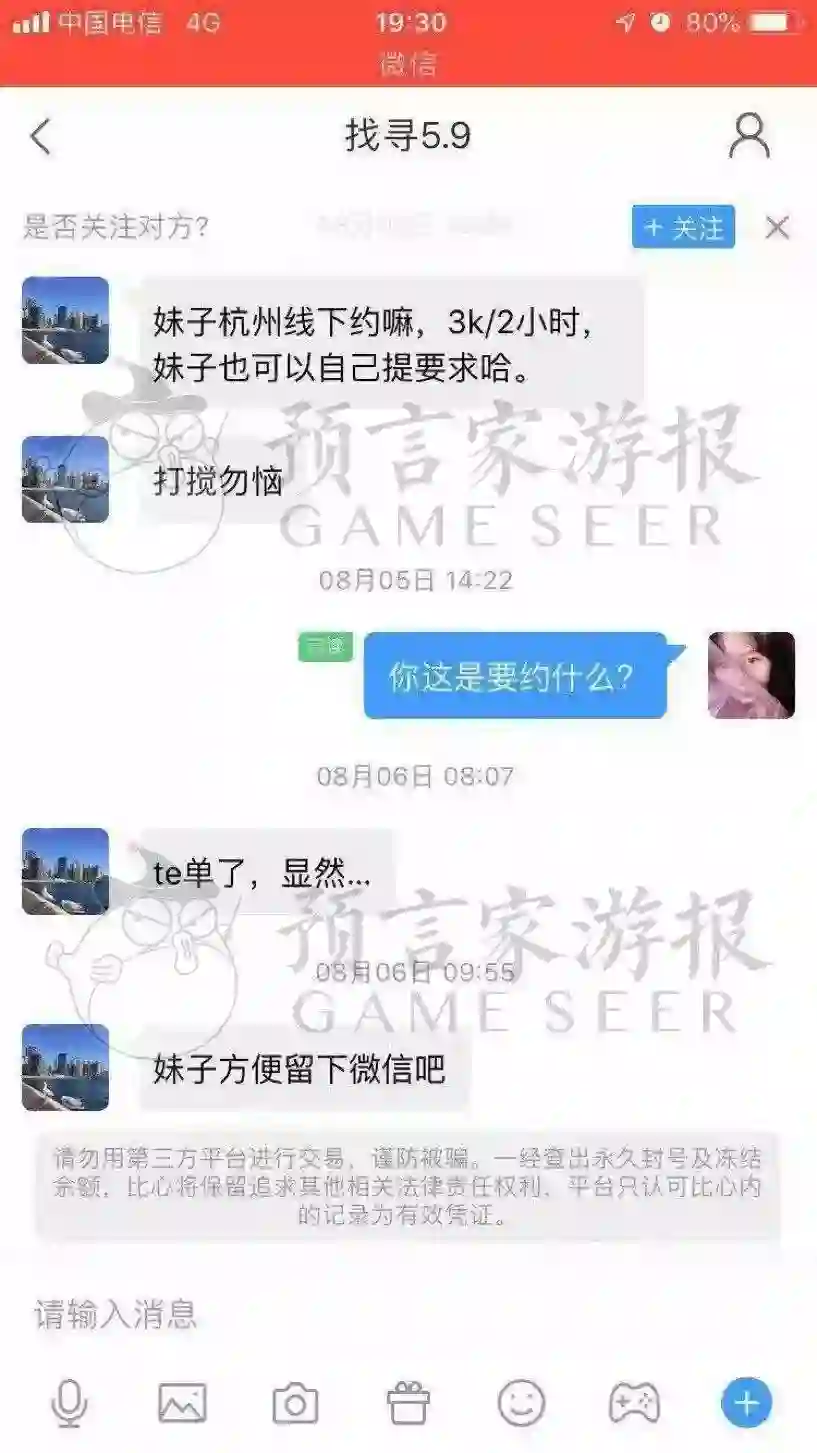 冯贝贝更是告诉预言家游报,她的私信记录中,有一大半都带有特殊目的。这样的用户注册陪玩账号可谓醉翁之意不在酒。“他们可能只是把比心当做约炮软件来用,成功就继续找下个目标,失败以后大概率就卸载了,他们根本没有找陪玩的需求。”冯贝贝说。