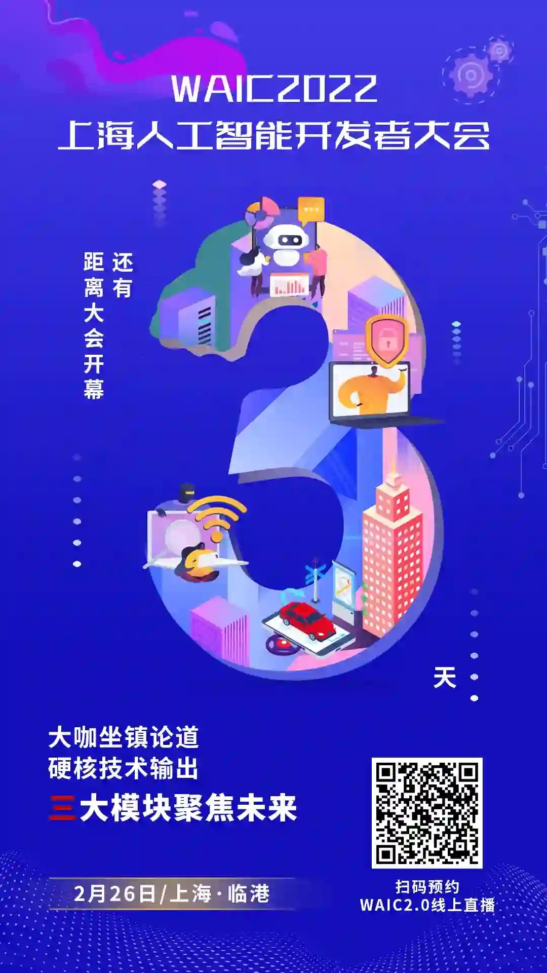 距离 “WAIC2022 上海人工智能开发者大会” 开幕还有 3 天!2 月 26 日,大会将以 “AI 开发者!成就数字化转型时代” 为主题,在上海市浦东新区创晶科技中心 T3 会议中心与广大 AI 开发者相见。