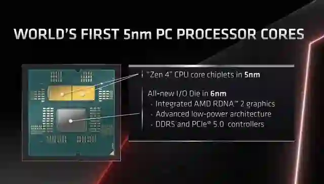 ZEN4 架构这次将使用 5nm 工艺打造核心,I/O Die 也从 12nm 升级到了 6nm 并使用先进的低功耗架构。还将集成 RNDA2 架构核心显卡,支持 DDR5 和 PCIe 5.0。