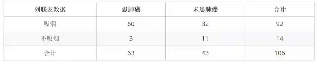 #根据列联表判断吸烟与致癌是否有关系