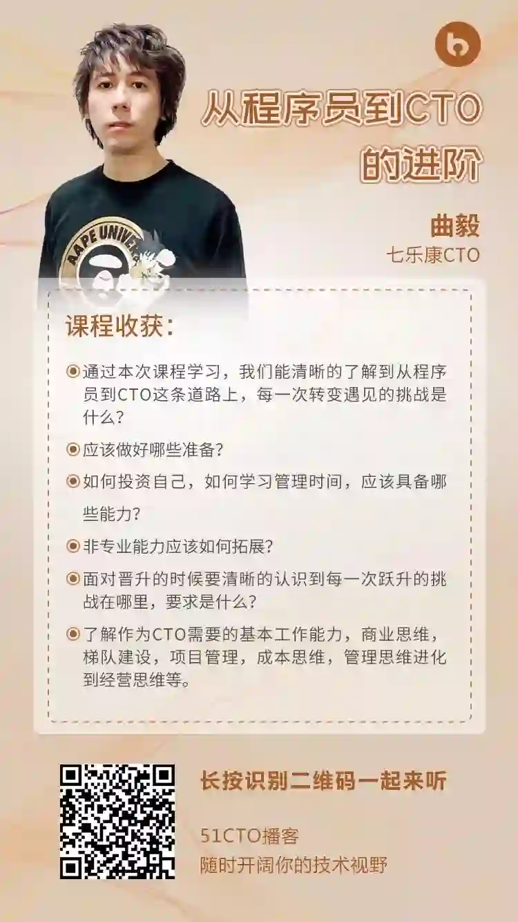 欢迎加入微信群“程序员到 CTO 进阶”,扫描识别下方二维码即可加入。如群已满,请加 51CTO 官方社群【微信号:CTO51shequn】,拉您入群。
