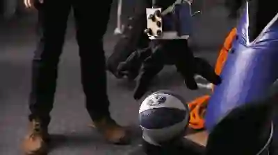 路易国王也是根据该机械臂进行设计的,同样地,也能够抓取和投掷物品。比如,抓一颗球,然后把它准确地扔到桶里: