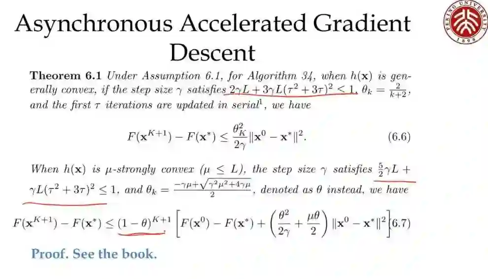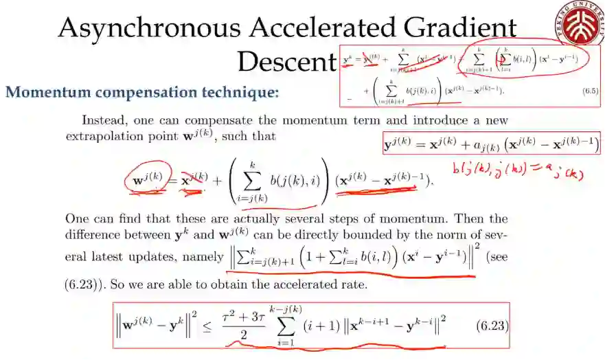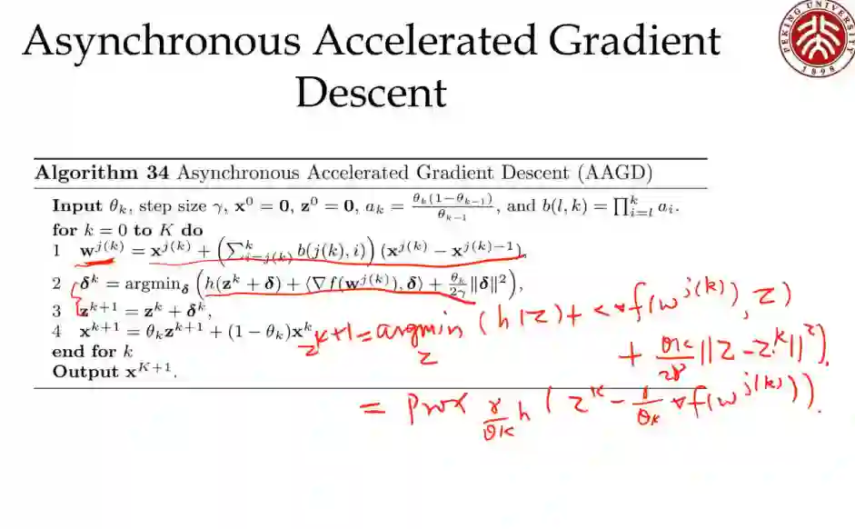 林宙辰教授首先细致介绍了异步梯度算法的应用背景和基本概念,并就atom锁定写入情况下的算法进行讲解,对加速异步算法中的冲量补偿技术和有界延迟情况下的异步加速梯度算法进行了深入浅出地讲解,并介绍了异步加速梯度算法的收敛效率。