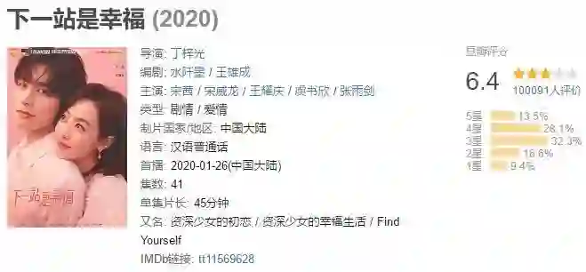 只可惜,随着剧情深入,《下一站是幸福》的口碑出现严重滑坡,豆瓣评分从8.1断崖式跌至6.4,且仍有下滑趋势。