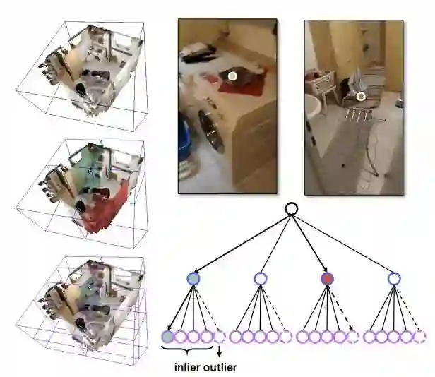 本文提出了一种新颖的异常感知神经树,它将两个世界,深度学习和决策树方法联系起来。它建立在三个重要的块上:(a)在室内场景上进行分层的空间划分,以构建决策树;(b)被实现为深度分类网络的神经路由功能,用于更好地理解3D场景;(c)离群剔除模块,用于在分级路由过程中滤除动态点。它可以通过空间分区实现鲁棒的神经路由,并且在摄像机姿势精度方面要比最新技术高出30%左右,同时运行速度也相当快。
