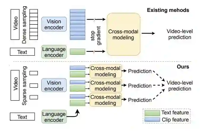 规范的视频和语言学习方法(例如,视频问答)规定了一个神经模型,可以从视觉模型的离线提取的密集视频功能和语言模型的文本功能中学习。这些特征提取器是经过独立训练的,通常在与目标域不同的任务上进行训练,使这些固定特征对于下游任务而言不是最理想的。此外,由于密集视频特征的高计算量,通常难以(或不可行)将特征提取器直接插入现有方法中以进行微调。为了解决这一难题,本文提出了一个通用框架CLIPBERT,该框架通过使用稀疏采样(仅使用一个视频中的一个或几个稀疏采样的短片)来实现可负担的视频和语言任务的端到端学习。