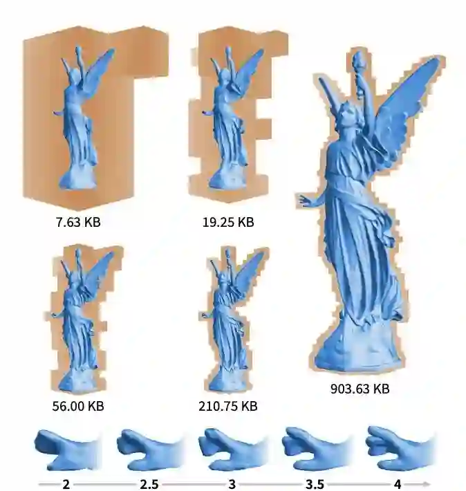 SDF逐渐成为3D形状的有效表示形式。最先进的方法通常使用固定大小的大型神经网络对SDF进行编码,以近似显示具有隐式表面的复杂形状。但是,由于这些大型网络的渲染在计算上是昂贵的,因为它要求每个像素都需要通过网络进行多次前向传递,因此对于实时图形来说,这些表示不切实际。本文引入了一种有效的神经表示,首次实现了高保真神经SDF的实时渲染,同时实现了最先进的几何重构质量。