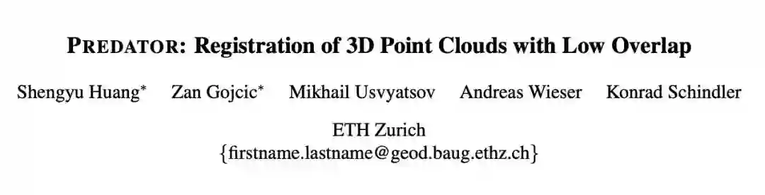 标题: PREDATOR: Registration of 3D Point Clouds with Low Overlap