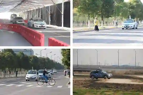 隧道场景除了全程屏蔽 GPS 信号外,还在入口处安置了三处施工围挡,出口处设有停车标志线,进一步增加了考察的难度;