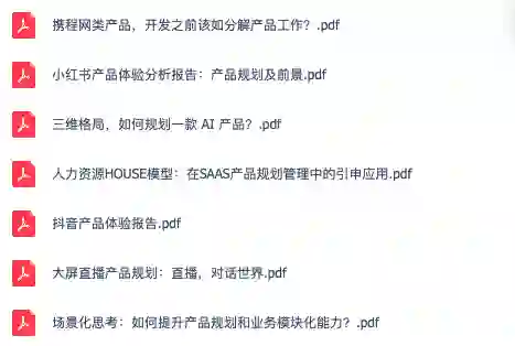 凡是报名公开课的同学,均可在学习顾问老师处领取一份产品规划大礼包,内含25个产品规划拆解案例,帮助你在案例中打开产品规划新思路。