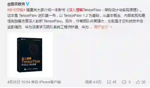 4月25日,图灵教育微博发布了《深入理解TensorFlow》预售的消息,得到了读者小伙伴们强烈的反响。有读者笑说:“TensorFlow 入门书还没读完,进阶书这么快就来了?” 没办法,谁让我们这么贴心,就是要为你的技术之路提供无间隙的阅读保障。如果你这会儿还是第一次听说这本书,那请先来读读这篇文章:TensorFlow进阶第一书预售。