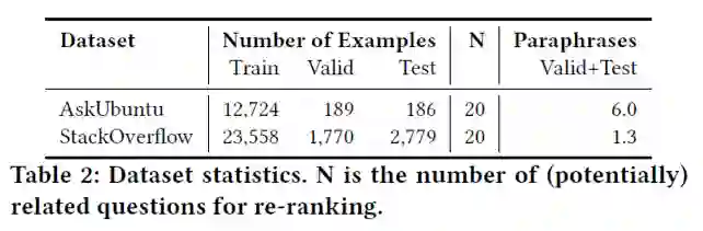 表2列举了本文问答实验数据集的一些统计信息,均来自technical领域。