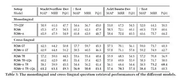 1. 研究了technical cQA上的跨语言问题检索方法,并发现翻译质量是严重影响检索性能的因素