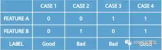一方面,联邦学习理论上是可以获得最优解的,通过梯度下降迭代过程,可以实现联邦间的特征组合和交叉建模,从而解决如“异或”这样的非线性问题,这等价于把数据拼到一起后进行机器学习的效果。异或问题如下表所示: