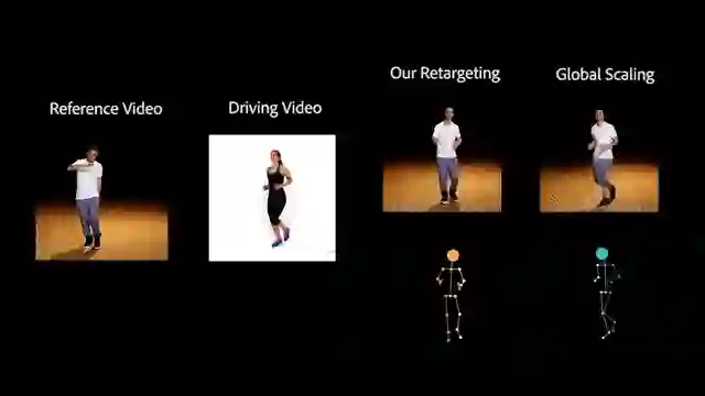 有了骨架上的动作迁移之后,我们可以基于此做图像生成,这就是 performance cloning。之前的 performance cloning 方法大多使用简单的 global scaling 做骨架转换或者需要 3D 的先验知识,因此限制了其应用范围,而我们的方法不受此约束且能够产生更加合理的结果。