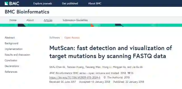 Shifu Chen et al, MutScan: fast detection and visualization of target mutations by scanning FASTQ data. BMC Bioinformatics.