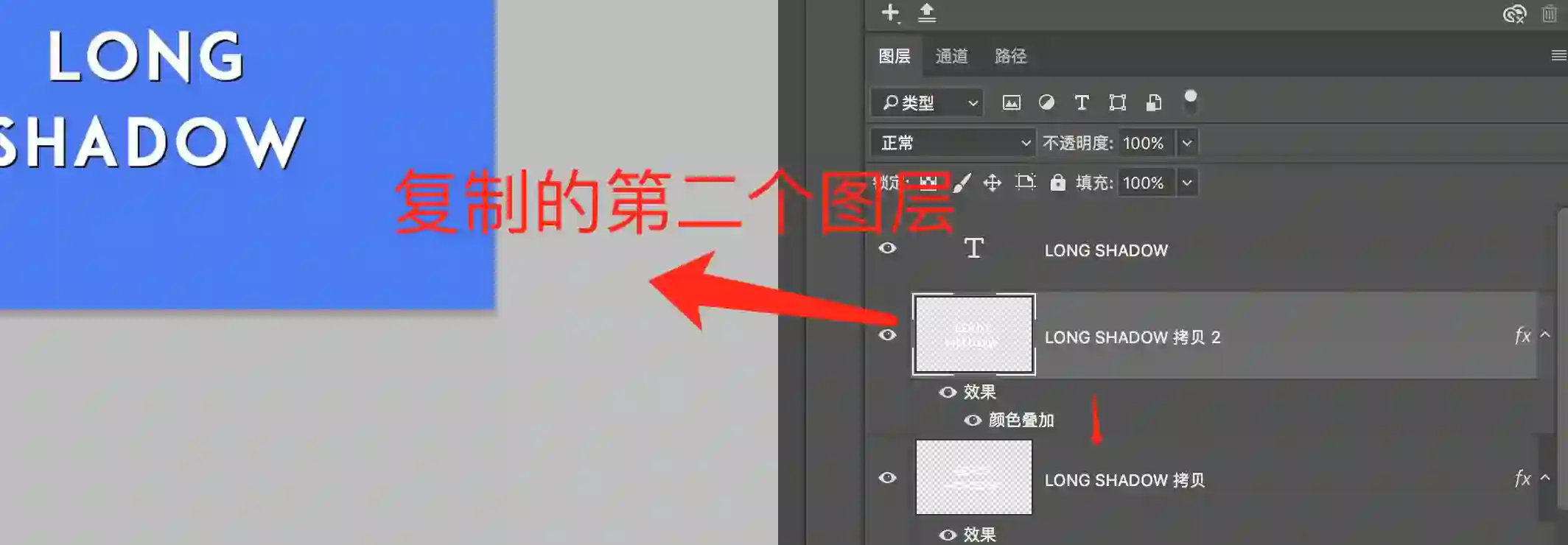 然后,我们再复制这个图层,再平移一次。然后合并这两个阴影图层