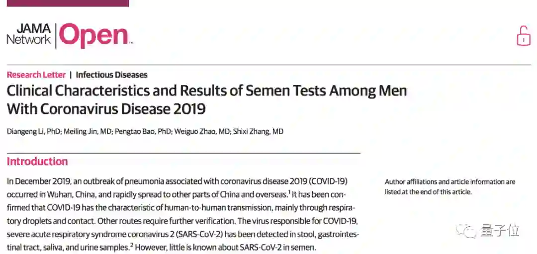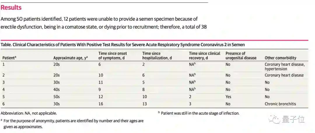 结果显示,6名受试者的精液核酸检测呈阳性。