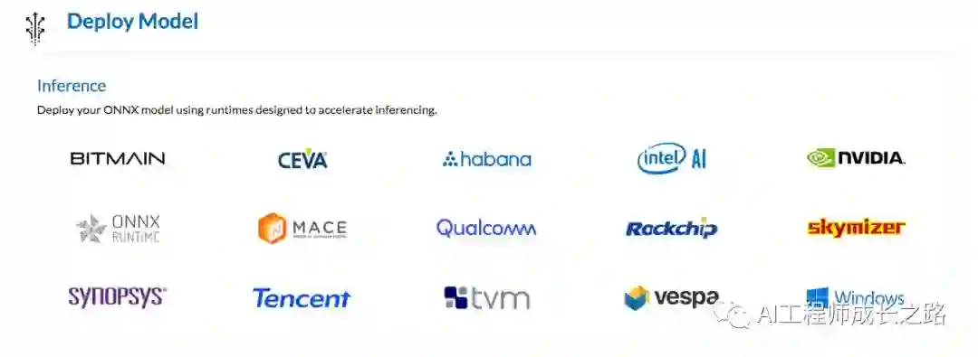 起初是微软联合Facebook等多个相关公司为了抗衡Tensorflow而提出的,Pytorch,CNTK,MXNET等框架都支持导出和加载ONNX格式的模型。