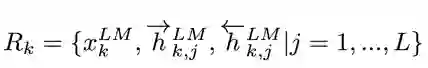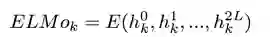 假设预训练的双向语言模型有 2L+1 层(词向量也算一层),那么对于第 k 个词,我们就可以得到一个向量表示的集合: