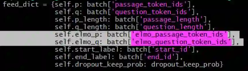 Elmo_passage_token_ids 是一个三维的 list 。然后,我们只需要透过 feed_dict 把 token ids 输入到 computation graph 就行: