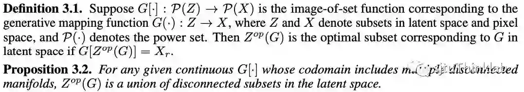 的定义,并说明拟合真实数据流形需要一个不连通的隐空间支撑。