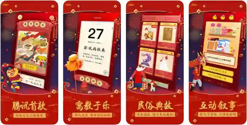 腾讯配合春节推出的新游,但又不止是一个游戏那么简单。轻度的互动玩法与醇厚的文化底蕴互补配合,错综的故事情节,让人仿佛置身传统文化的寻宝之旅。游戏中全程使用了色彩热烈、积极的中国传统艺术风格进行刻画,旨在让玩家通过触屏互动了解中国传统文化,同时从新意打造的复古艺术之中领悟国风之美。找回民俗年味,找回传统文化的精髓。