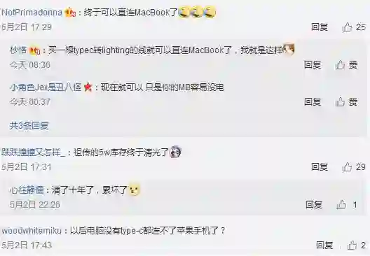 充电头的升级,对普通用户来说,最大好处就是不用再像iPhone X一样为了快充额外购置一堆价格不菲的配件产品;而对热衷于购买各类苹果产品的果粉来说,用MacBook Pro给iPhone充电还要转接头的尴尬场景终于要消失了。
