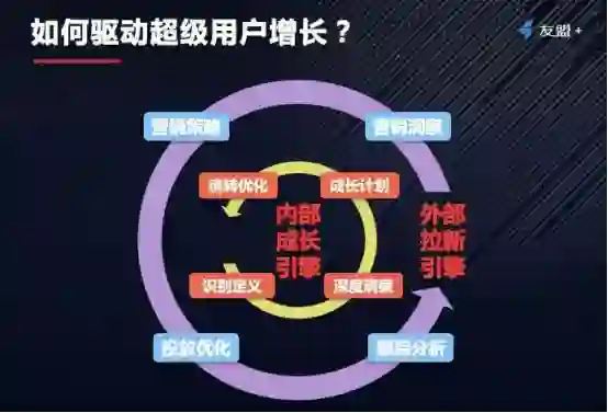 内部成长引擎和外部拉新引擎,这两个引擎相辅相成,合力促进超级用户增长/增值;