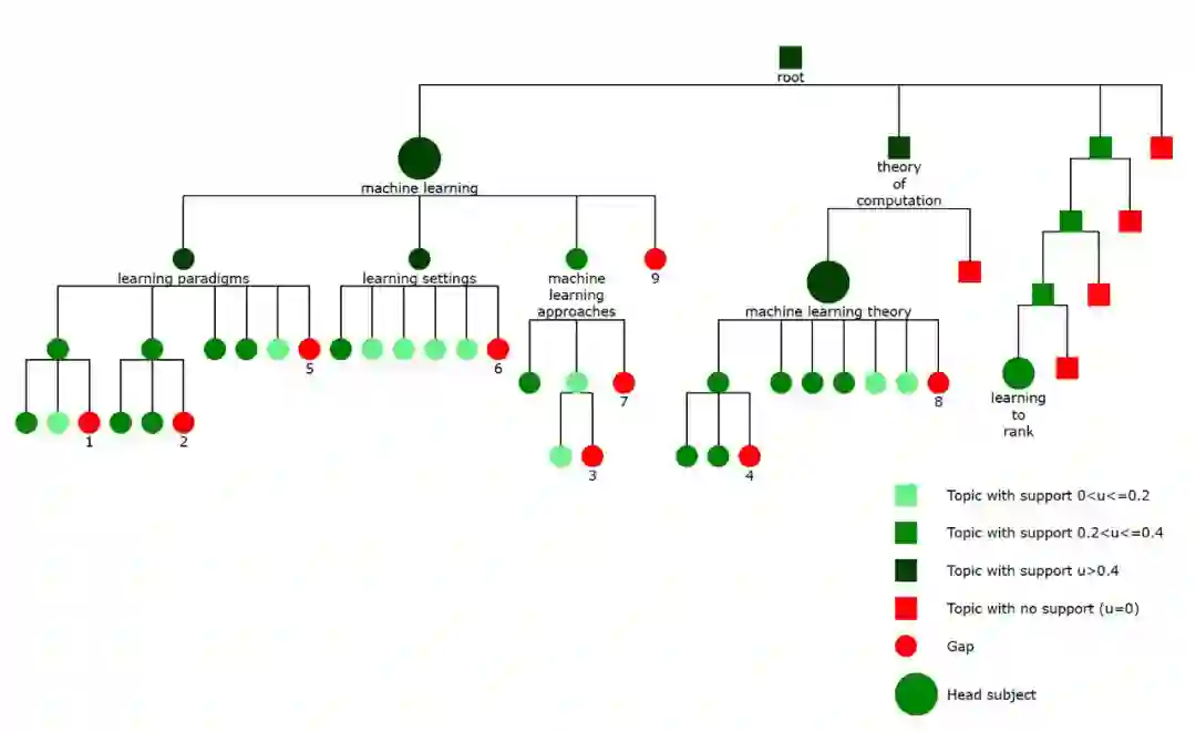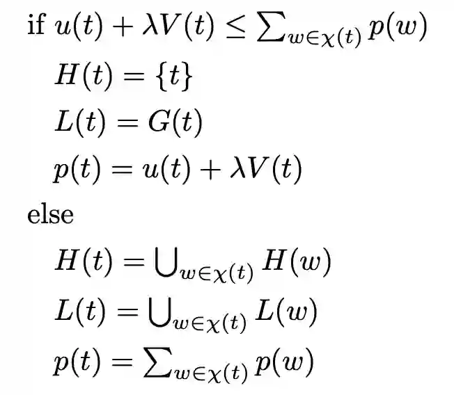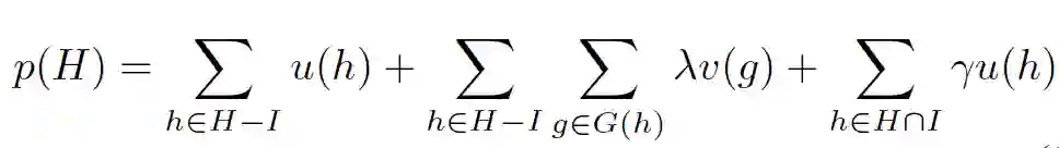 惩罚函数主要由三个部分组成:head subjects, gaps,offshoots。其中head subjects代表模糊子集最终对应到图谱中的中间节点(概念节点),gaps代表可以被插入的位置,offshoots代表应该在head subjects下但插入到错误未位置的叶子节点。通过Parsimonious Generalization of Fuzzy Sets算法,得到模糊子集H。通过对head subjects, gaps,offshoots最小化,将模糊子集正确的融合进已有图谱,并保证图谱结构的整体准确性。